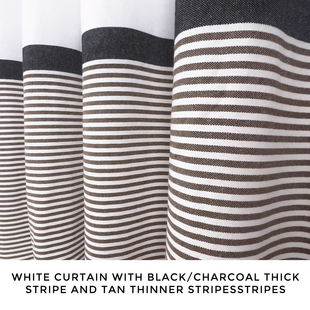 - Modern Farmhouse Shower Curtain - Our exclusively designed shower curtain features a white base with thin black horizontal lines. The original design by HOME by Hall & Perry.
