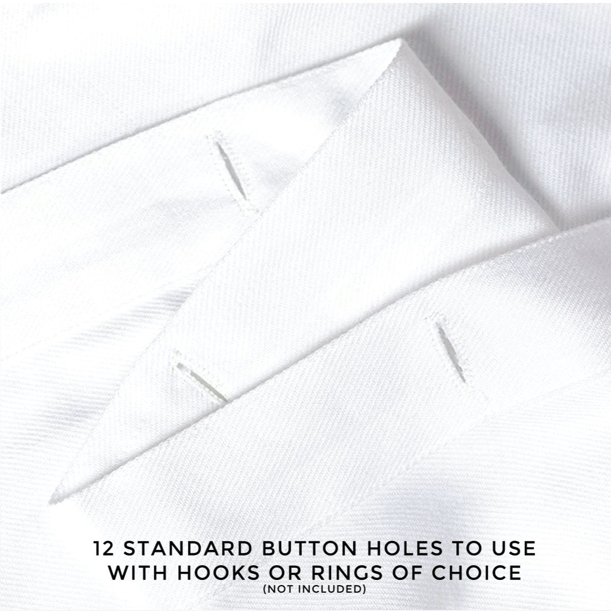 - Easy to Install - Installation is as effortless as placing a shower curtain ring through the sewn button holes and attaching to your shower rod. Each curtain contains 12 ring holes that fit standard hooks or rings (not included) for easy installation.